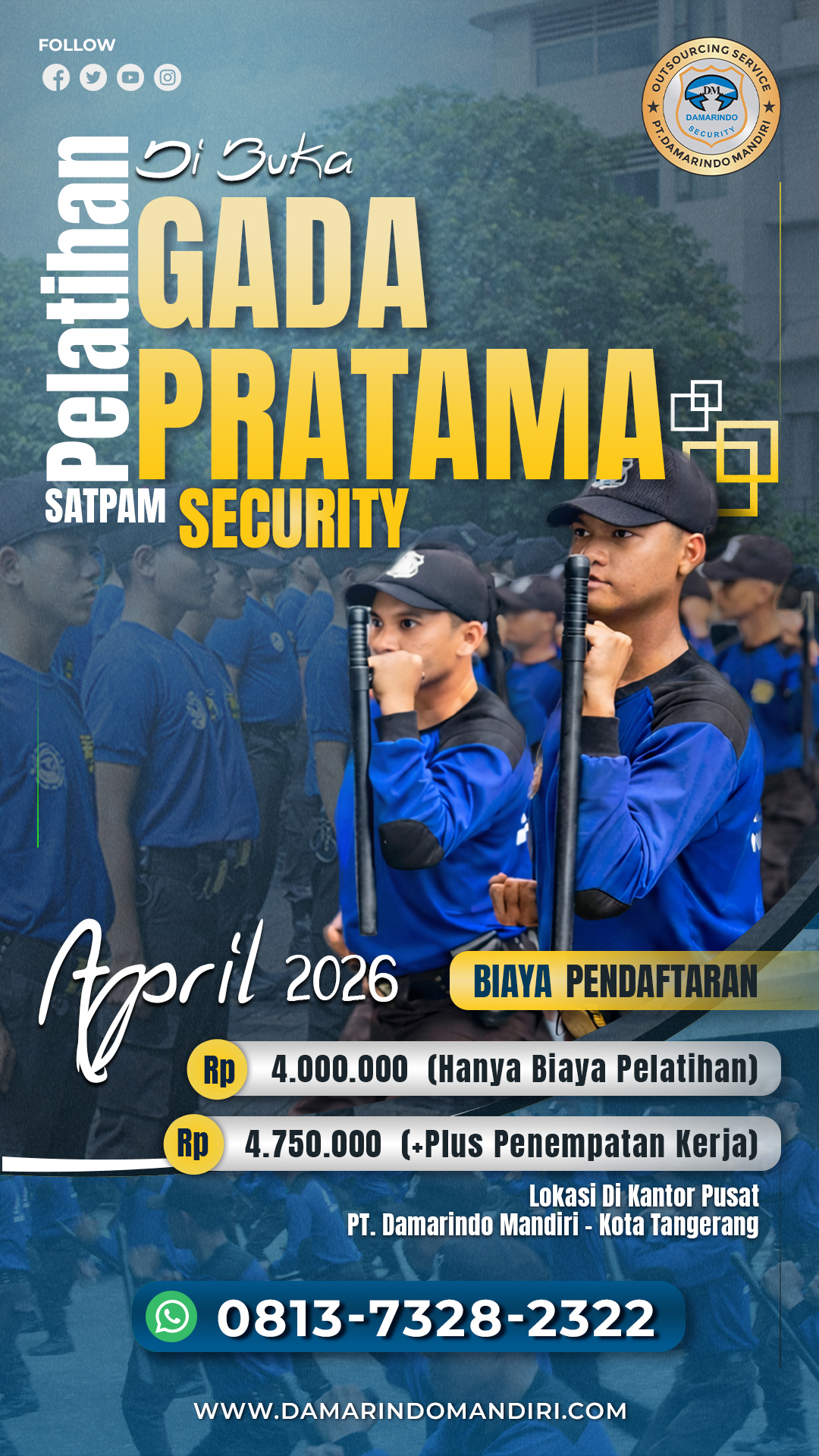 Pendaftaran Pelatihan Satpam Gada Pratama sangat mudah. Peserta cukup menghubungi kami untuk mendapatkan informasi jadwal, persyaratan, serta biaya pelatihan.